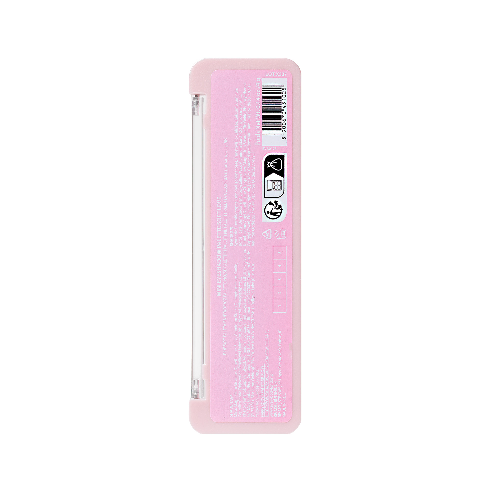 Zakochaj się w spojrzeniu z Mini Eyeshadow Palette Soft Love od Everybody London! Ta kompaktowa paletka to 5 idealnie dobranych cieni w romantycznych tonach różu, które łączą jedwabisty mat z intensywnym blaskiem. Stwórz wymarzony makijaż w kilka chwil – gdziekolwiek jesteś!